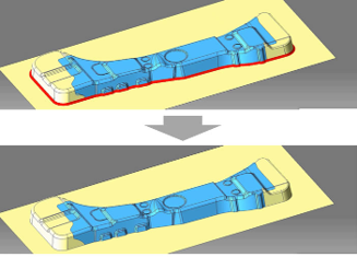 ตัวอย่างเช่น สามารถดำเนินการต่าง ๆ ได้โดยตรงระหว่างรูปทรงของชิ้นงาน (Surface) และบล็อกแม่พิมพ์ (Solid) ทำให้กระบวนการสร้าง Cavity และ Core มีประสิทธิภาพและรวดเร็วยิ่งขึ้นครับ