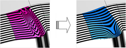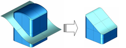 สามารถสร้างพื้นผิวใหม่ให้กับพื้นผิวที่เกิดรอยย่นหรือบิดงอ ซึ่งมักพบที่บริเวณจุดตัดของ Fillet ให้กลับมาเป็นพื้นผิวที่เรียบ และยังคงความต่อเนื่องกับพื้นผิวรอบข้างได้ครับ
