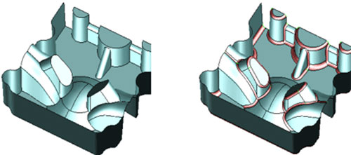ในการออกแบบแม่พิมพ์ มักมีรัศมีขนาดเล็กจำนวนมาก ดังนั้นการที่ระบบสามารถตรวจจับขอบได้โดยอัตโนมัติและใส่ Fillet ได้โดยใช้ความพยายามน้อยลง จะช่วยให้งานออกแบบสะดวกและมีประสิทธิภาพมากขึ้นค่ะ